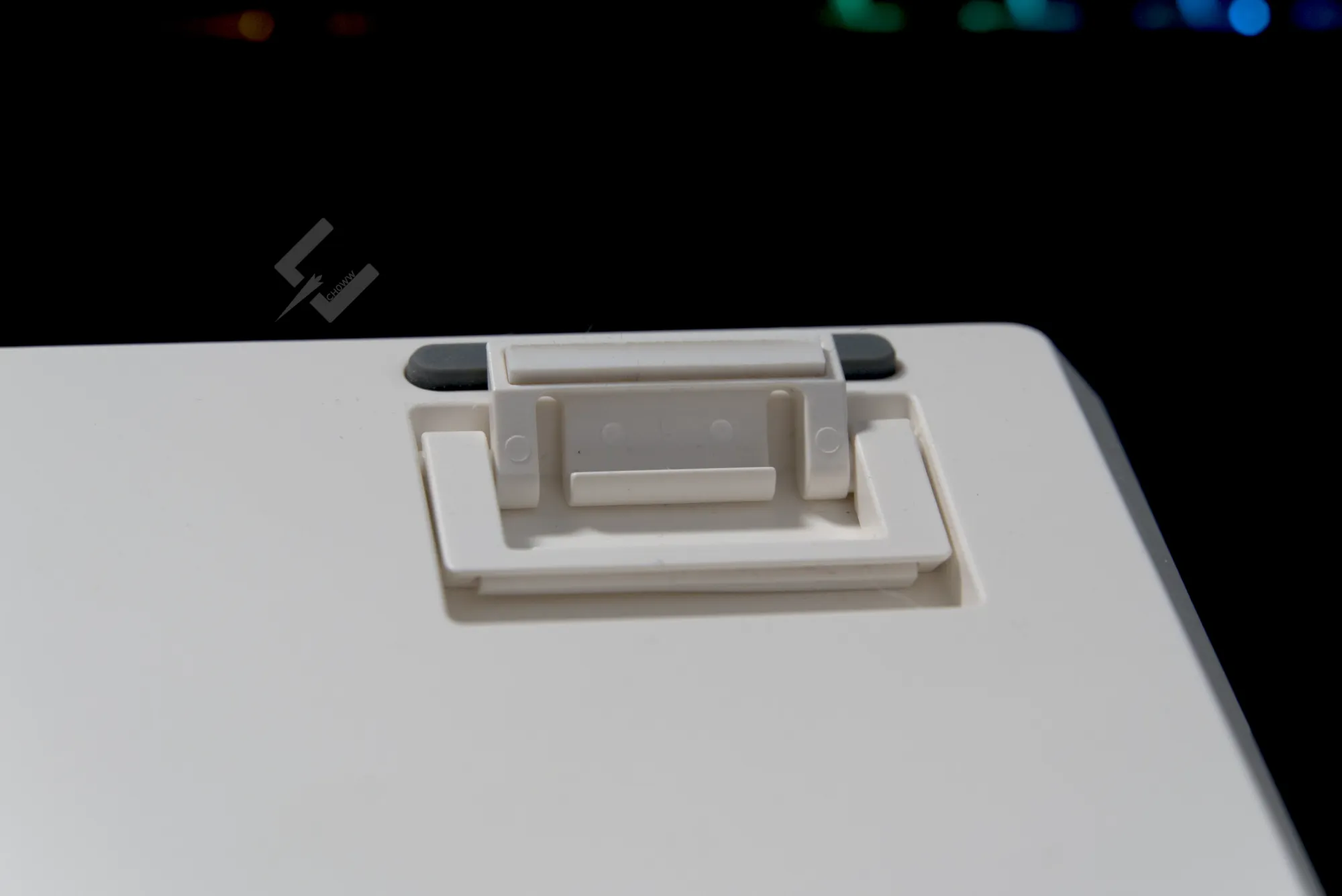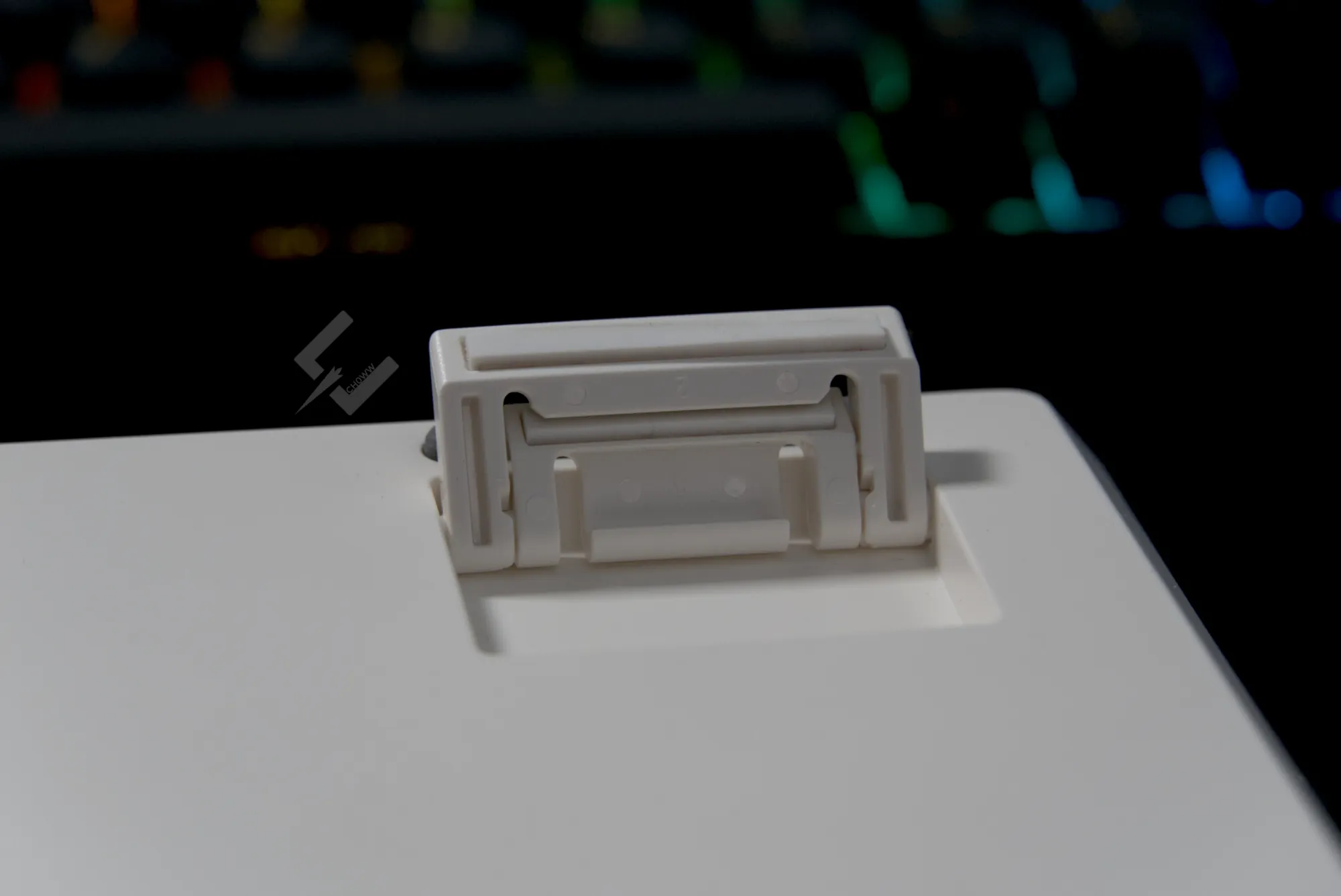 Hormis cela, le clavier est, en terme de fonctionnalités... Comment dire, dans son plus simple appareil: il n'y a pas de bluetooth, ni de fonctionnalités sans-fil, ni de batterie ou d'interrupteur permettant de l'allumer ou de l'éteindre. En revanche, on peut l'ajuster dans son inclinaison, avec deux modes possibles: