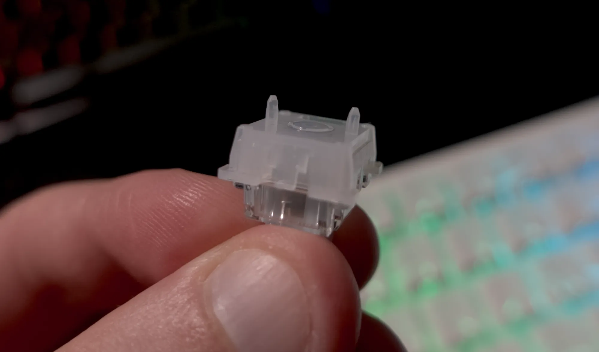 Le modèle que j'ai acheté contient des switches Ice Blue (Magnetic) de chez OutEmu, mais vous avez d'autres modèles disponibles.