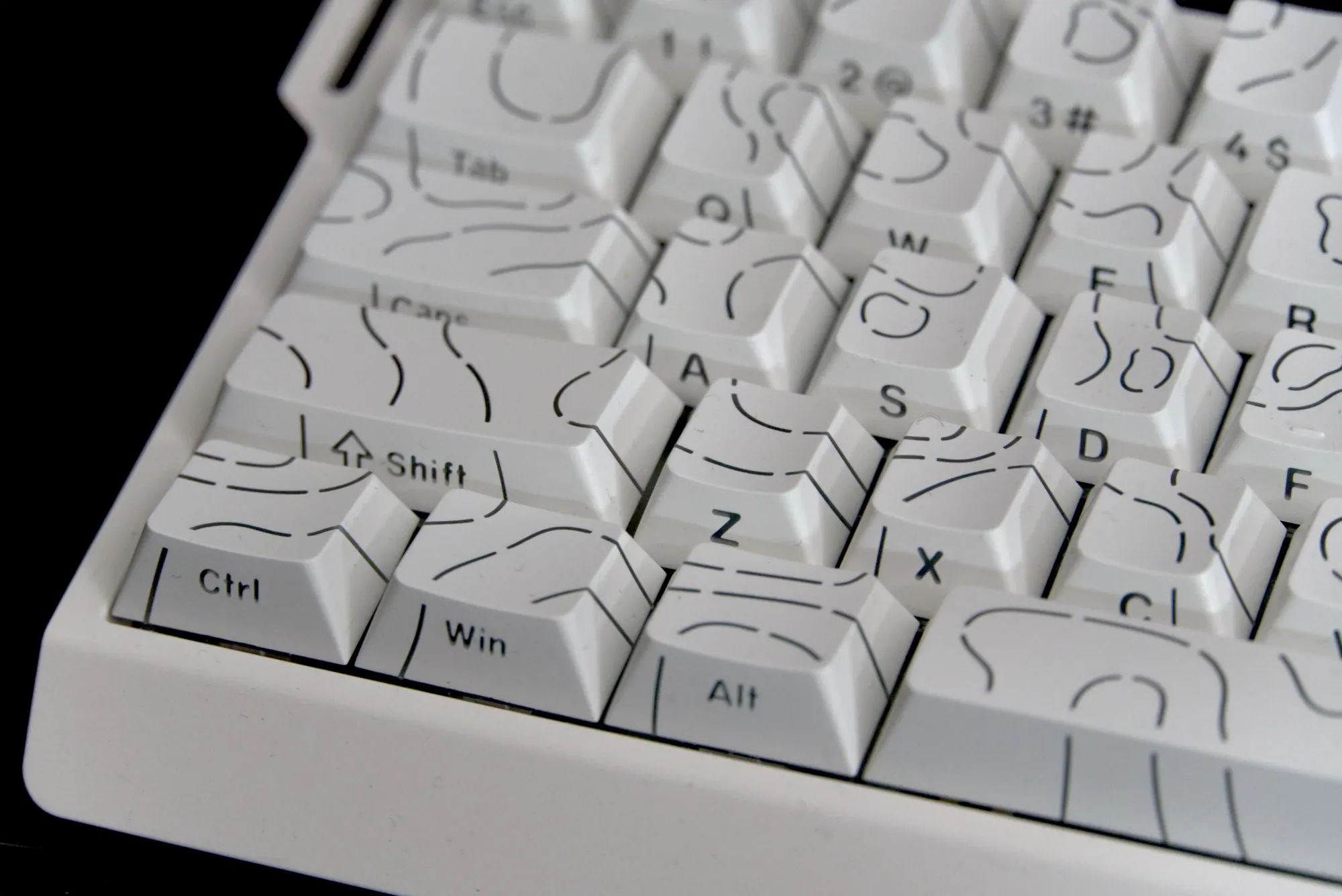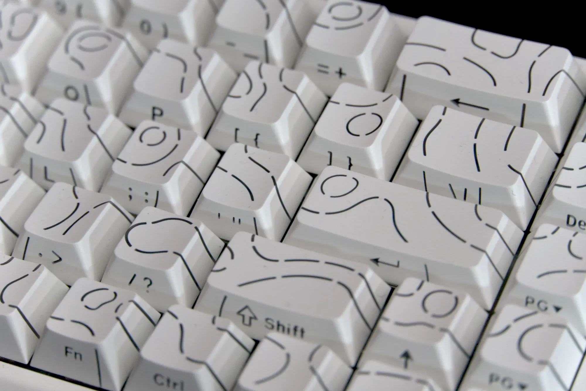 Le clavier est lumineux. Très lumineux. Bien plus que le Monsgeek FUN60 qui possède un éclairage des LEDs un peu discret (la faute au plateau noir qui ne diffuse pas la lumière) ainsi que l'Akko 3068B+, ce dernier possédant pourtant un plateau blanc qui laisse plutôt bien passer la lumière. Au passage, la matière des touches du clavier est en PBT transparente, permettant d'illuminer facilement les touches tout en donnant un petit côté gaming/militaire. Vous savez, comme les cartes topographiques, où l'on voit l'altitude d'une zone...